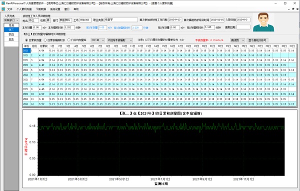 11、管理軟件:可選配強大的RenRiPersonal個人劑量管理軟件,軟件可計算日累積、月累積、年累積、輻照時長、日平均劑量率、扣除或不扣除本底輻射,瞬間顯示86400條/天的劑量率,以圖譜或文字的方式展現(xiàn)數(shù)據(jù);可為特定用戶提供定制開發(fā)或二次開發(fā)。